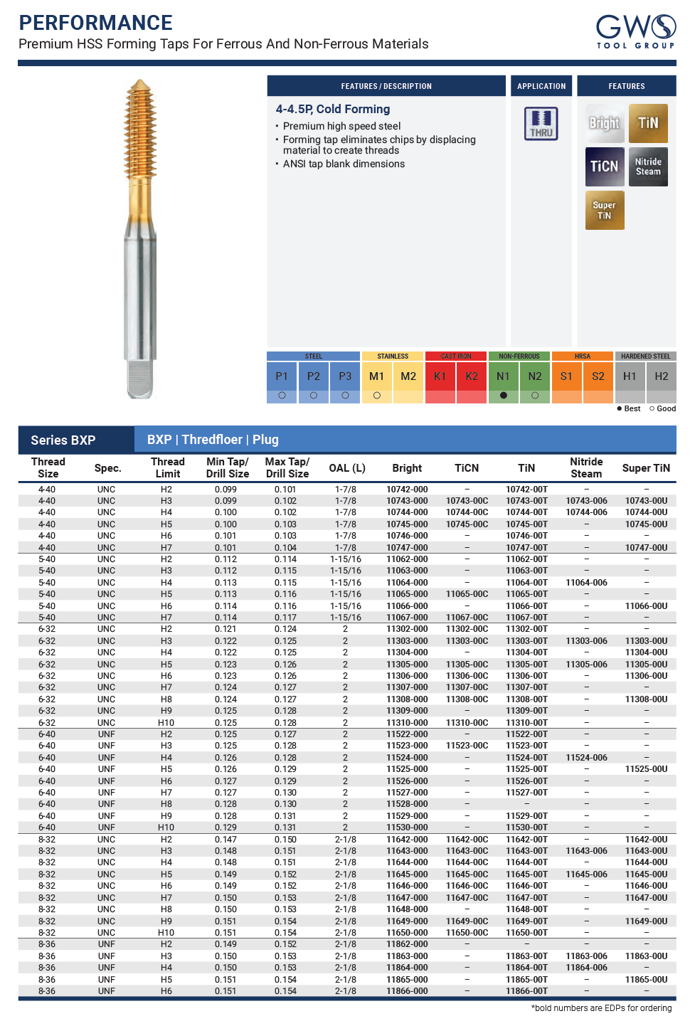 Click the button below to add the Balax 11062-000 - 5-40 BXB PH2 Thredfloer Form Tap Plug Bright USA - Pkg 12 ea to your wish list.