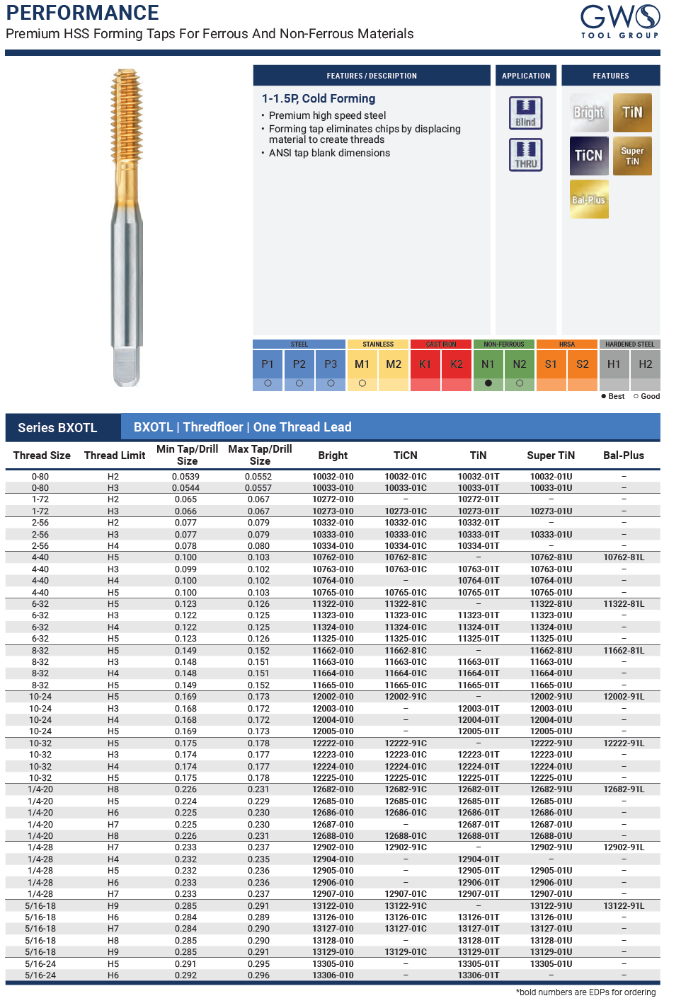 Click the button below to add the Balax 11663-010 - 8-32 BXB BH3 OTL Form Tap Bottom Bright USA - Pkg 12 ea to your wish list.