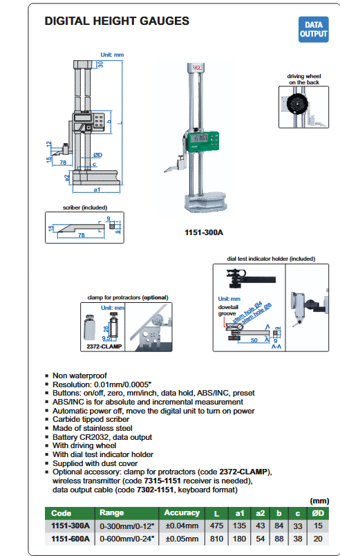 Click the button below to add the Insize 1151-600 - Electronic Twin Beam Height Gage 0 - 24"/600 mm 0.01mm/0.0005 to your wish list.