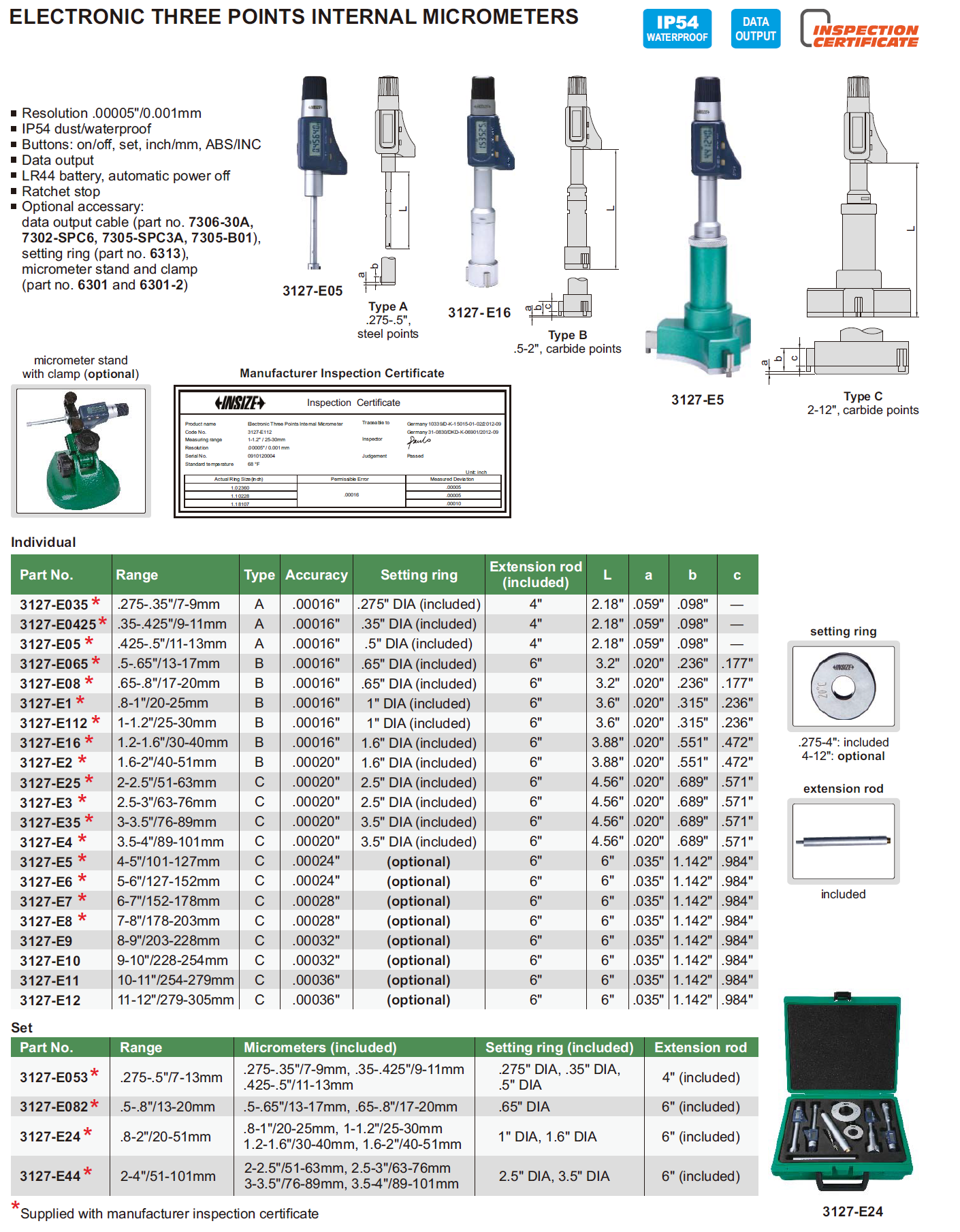 Click the button below to add the Insize 3127-25E- Electronic Three Point Internal Micrometer .790-.980"/20-25mm w Carbide Tips & Standard Ring 20-25 mm to your wish list.