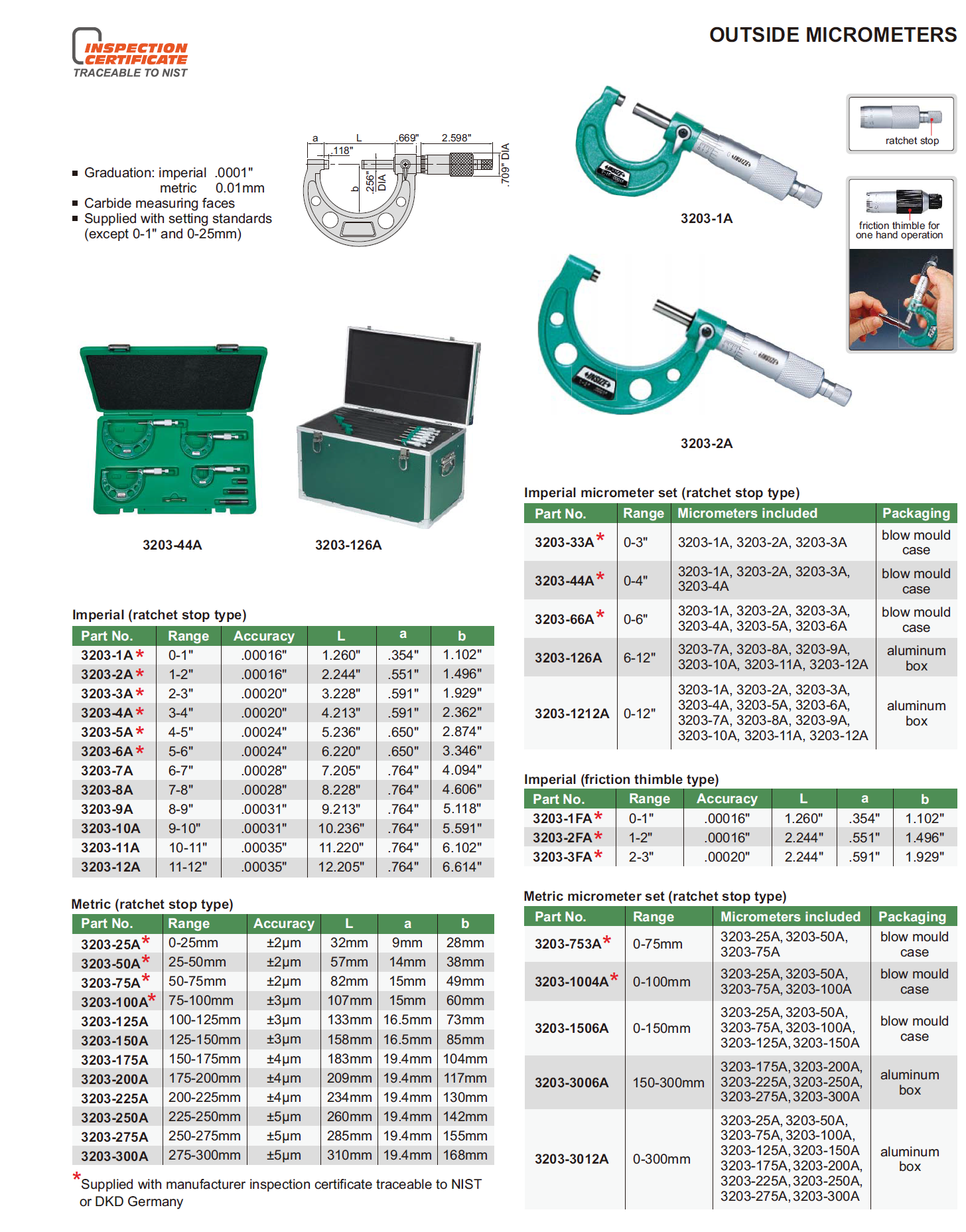 Click the button below to add the Insize 3203-44A - 0-4" Outside Micrometer Set .0001 w Std's & Ratchet Stop to your wish list.