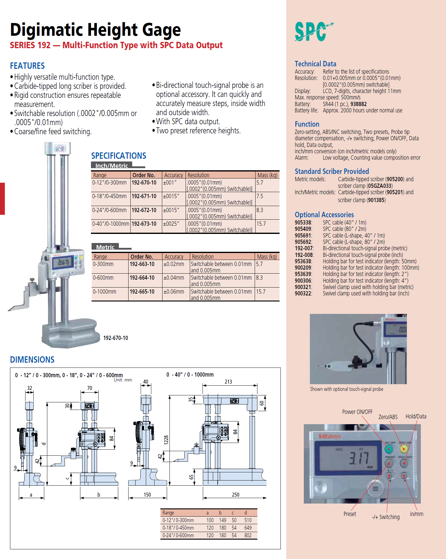 Click the button below to add the Mitutoyo 192-672-10 - LCD Digimatic Height Gauge, SPC Output, 0-24" Range, 0.0005" Resolution, +/-0015" Accuracy to your wish list.