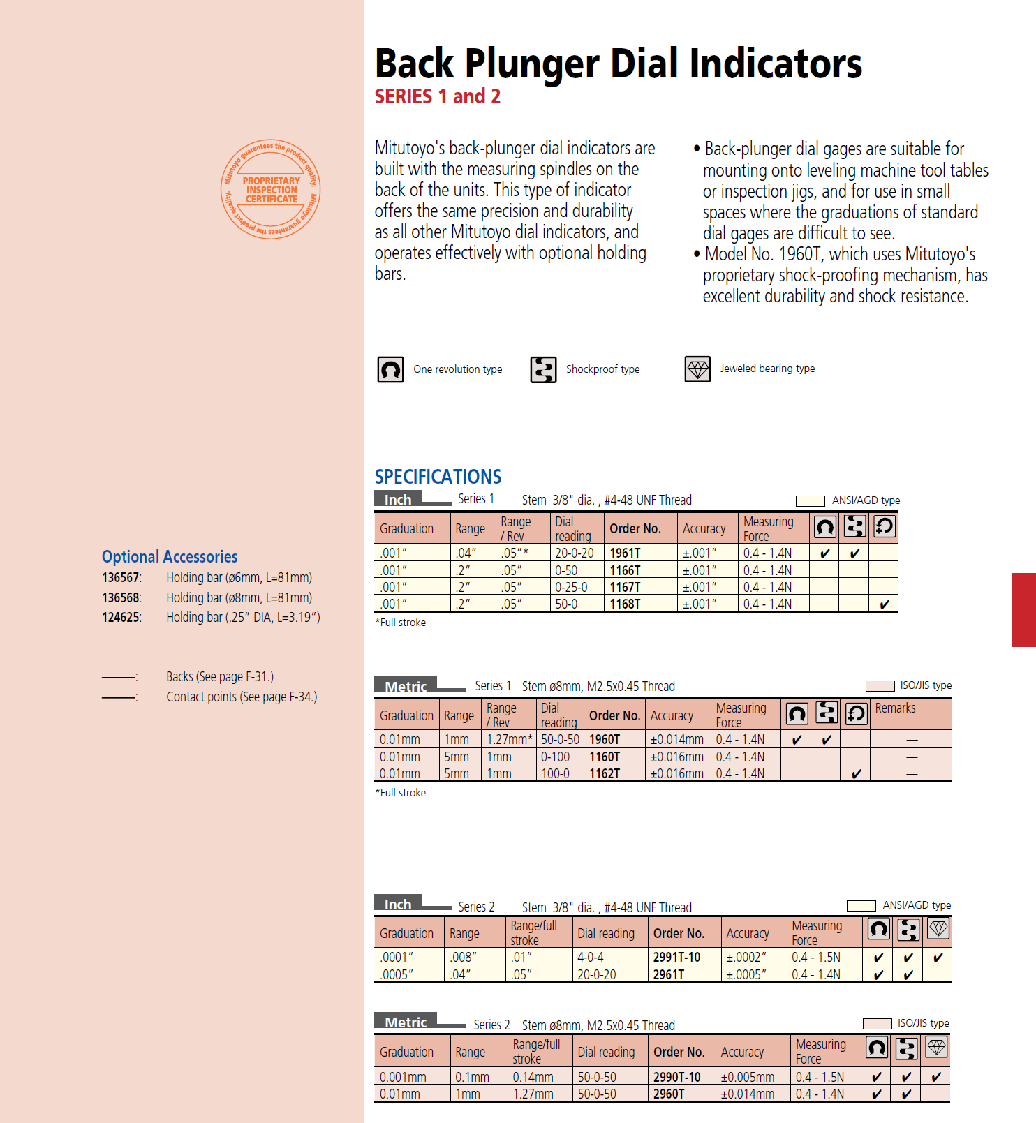 Click the button below to add the Mitutoyo 1960A - Dial Indicator Back Plunger .0mm - 1mm, 8mm Stem, M2.5X0.45, Flat Back to your wish list.
