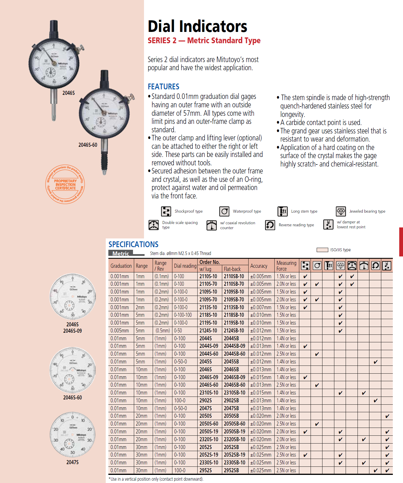 Click the button below to add the Mitutoyo 2046S-60 - Dial Indicator Metric Standard .01mm - 10mm - Water Proof to your wish list.
