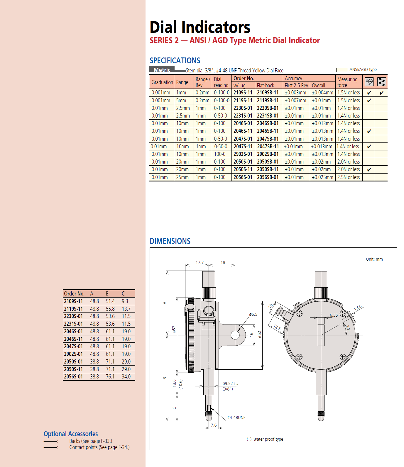 Click the button below to add the Mitutoyo 2047A-11 - Dial Indicator .01mm - 10mm, 3/8 Stem, 4-48, Lug to your wish list.