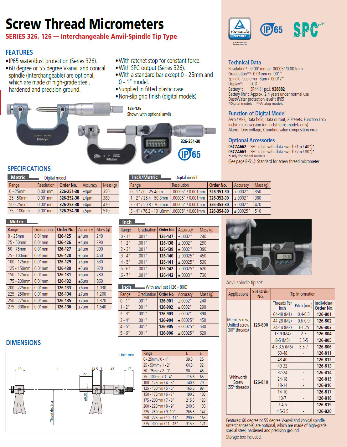 Click the button below to add the Mitutoyo 326-352-30 - 1-2" 25-50 mm Digimatic Screw Thread Micrometers IP65 SPC to your wish list.