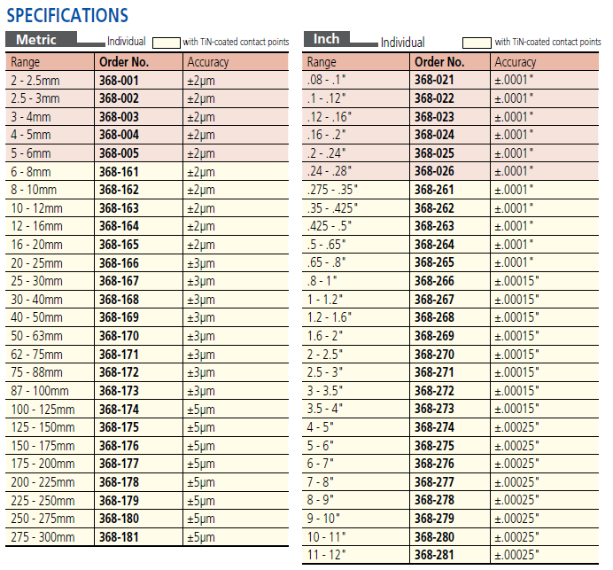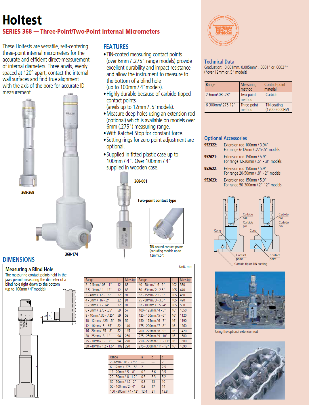 Click the button below to add the Mitutoyo 368-165 - Holtest Internal Micrometer with Tin coated Cont. Pts. 16-20 mm to your wish list.