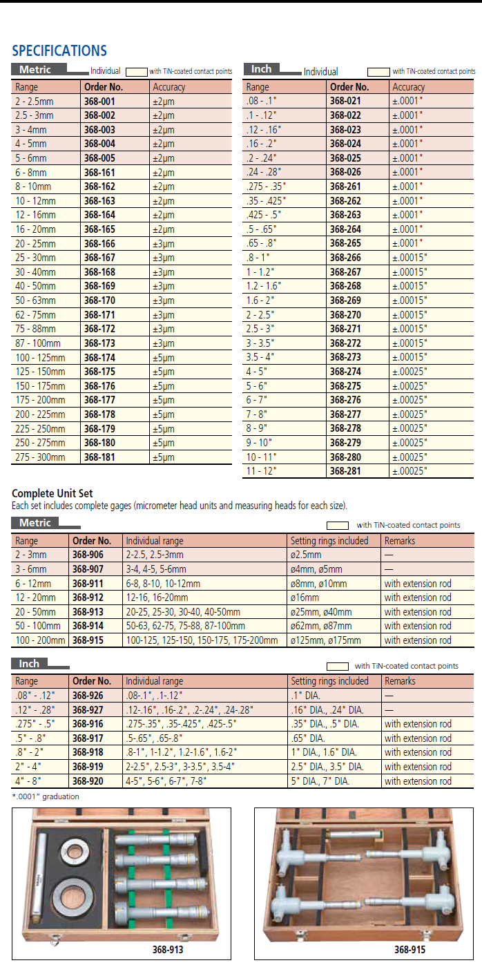 Click the button below to add the Mitutoyo 368-267 - Holtest Internal Micrometer w Tin coated Carb. Cont. Pts. 1" - 1.2" to your wish list.