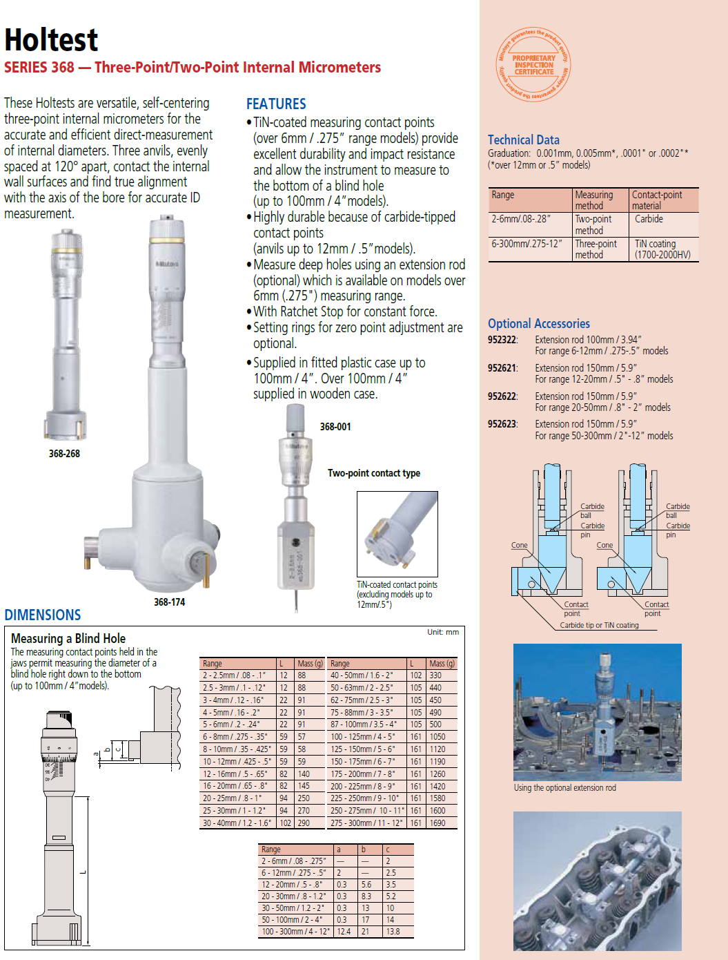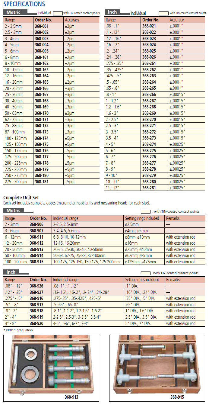 Click the button below to add the Mitutoyo 368-268 - Holtest Internal Micrometer w Tin coated Carb. Cont. Pts. 1.2" - 1.6" to your wish list.