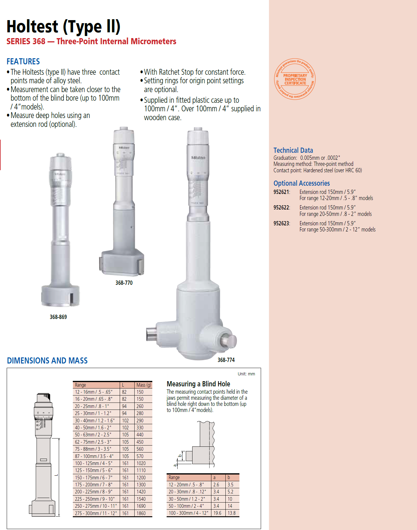 Click the button below to add the Mitutoyo 368-996 - Holtest (Type II) 8 PC Internal Micrometer Set .8 - 2" to your wish list.