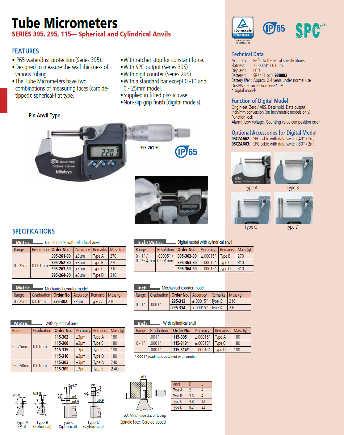 Click the button below to add the Mitutoyo 395-363-30 - 0-1" Digimatic Tube Micrometers, SPC IP65 to your wish list.