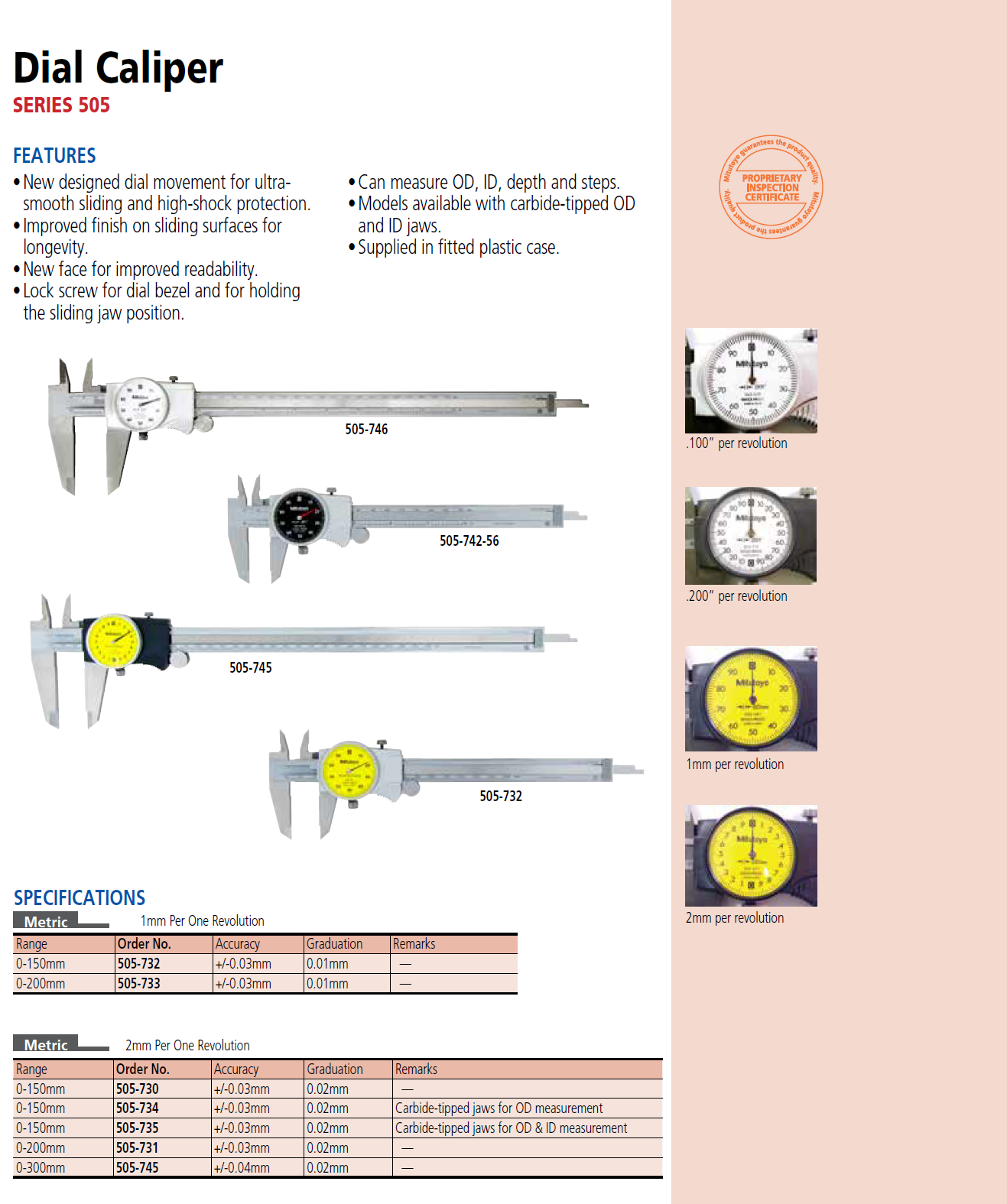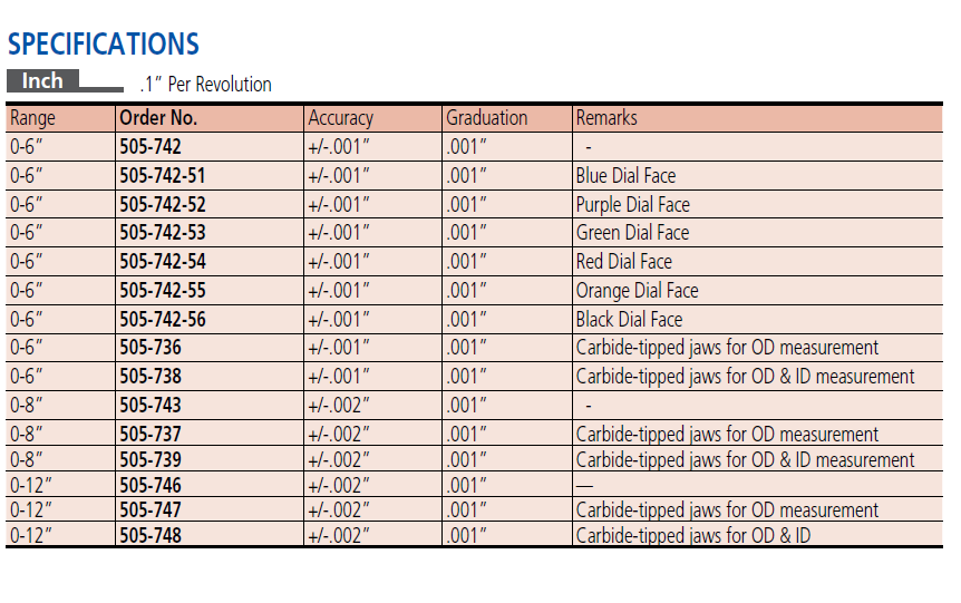 Click the button below to add the Mitutoyo 505-742-52J 6" Dial Calipers Purple Face .1/REV .001 to your wish list.