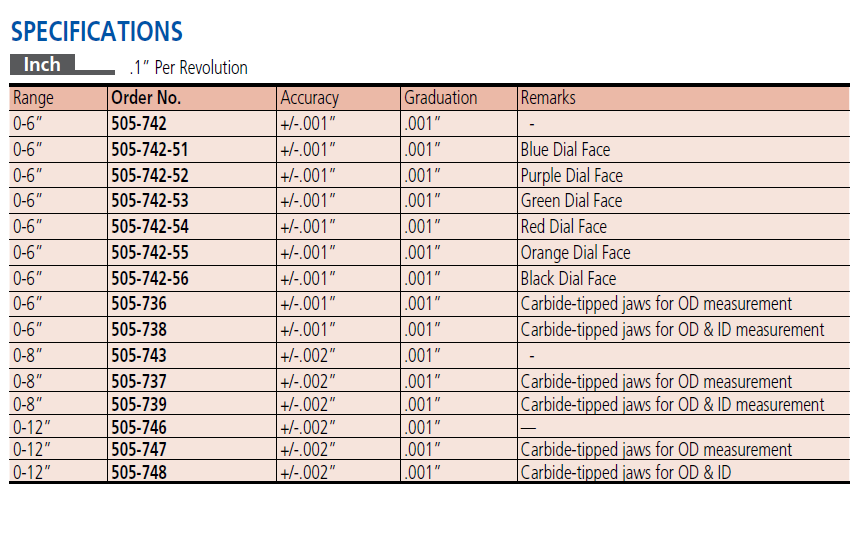 Click the button below to add the Mitutoyo 505-742-55J - 6" Dial Calipers Orange Face .1/REV .001 to your wish list.