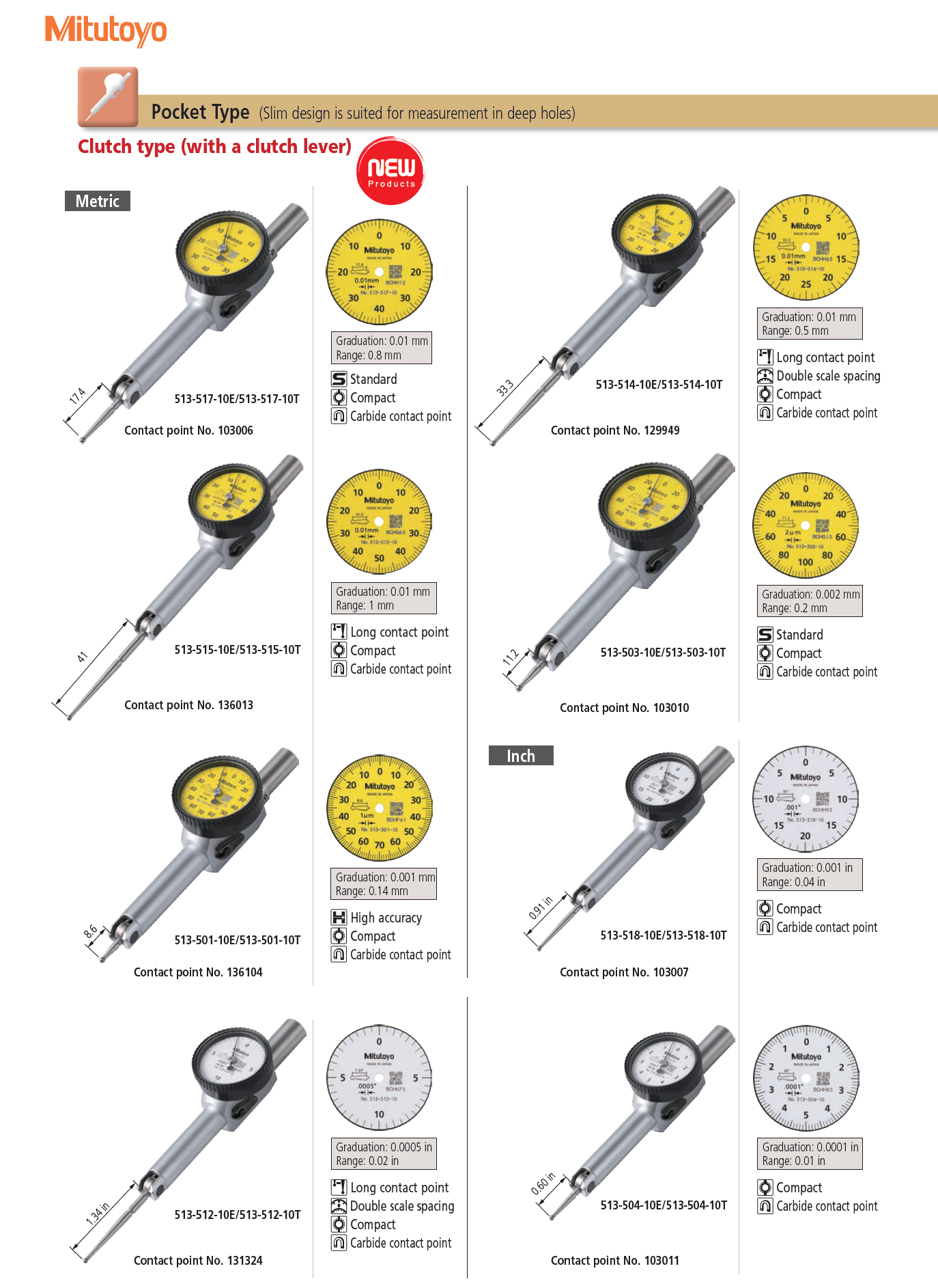 Click the button below to add the Mitutoyo 513-518-10E - Pocket Test Indicator Basic Set .04"R, 0.0001" Grad to your wish list.
