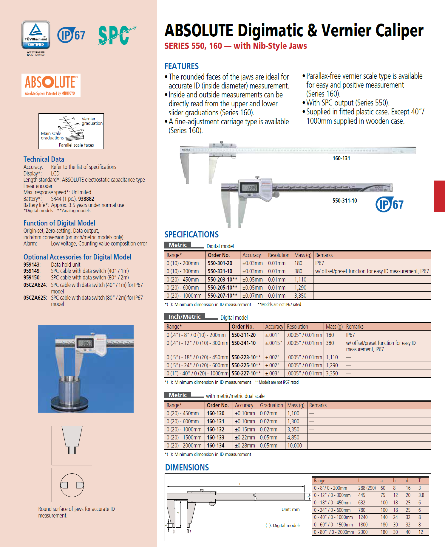 Click the button below to add the Mitutoyo 550-225-10 - 24" ABSOLUTE Digimatic NIB Stye Jaw Caliper SPC to your wish list.