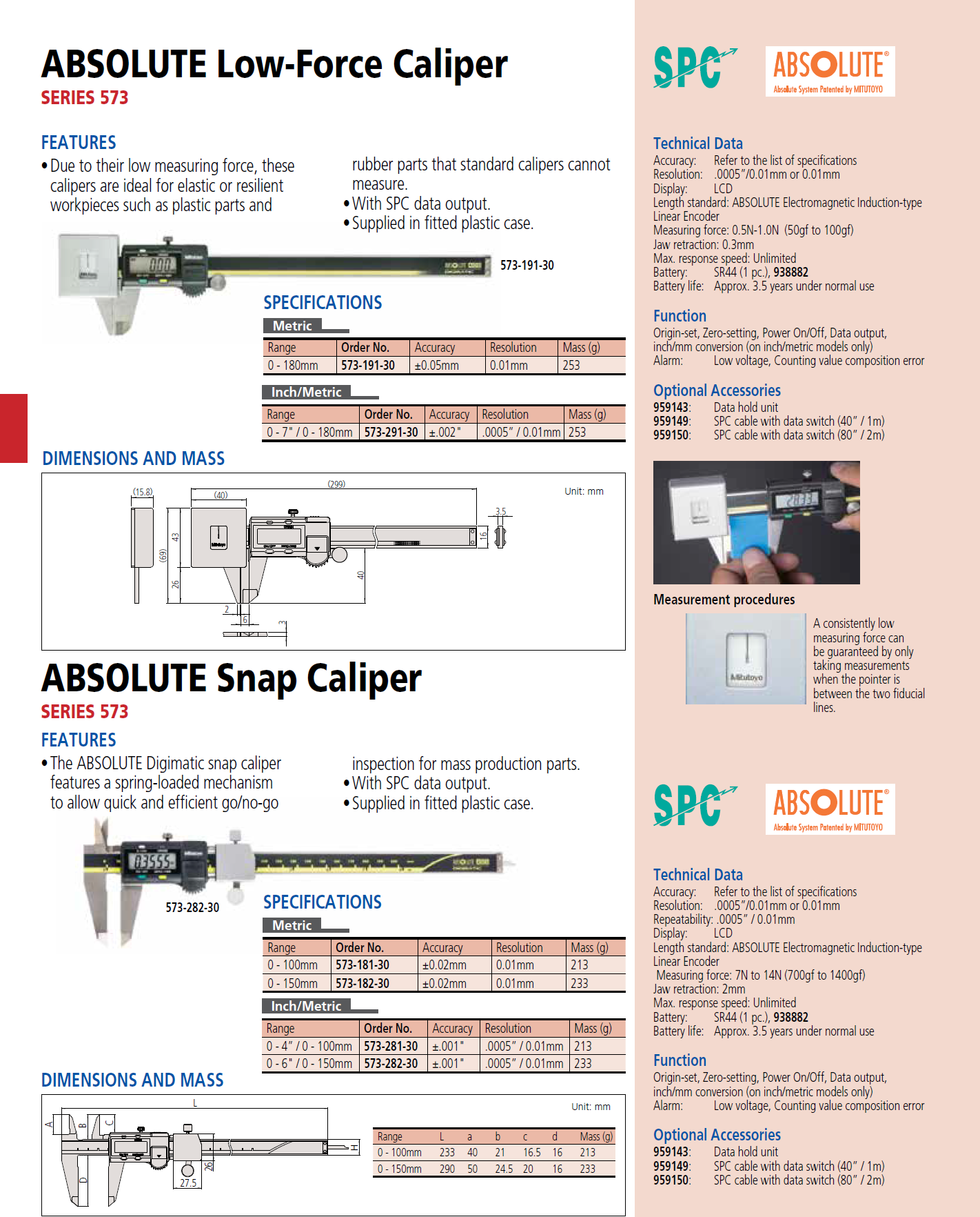 Click the button below to add the Mitutoyo 573-291-30 - ABSOLUTE Low Force Caliper 0"-7" / 0-180mm SPC to your wish list.