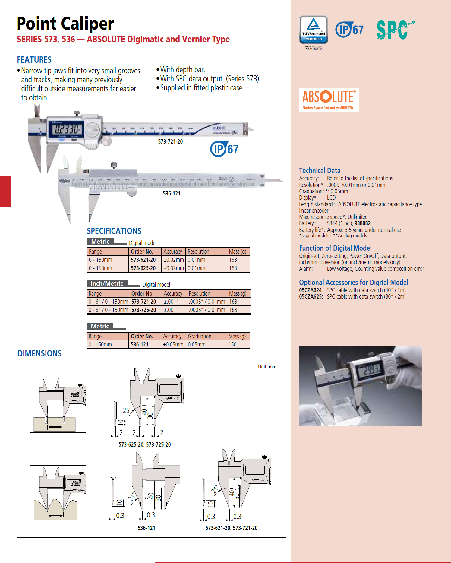 Click the button below to add the Mitutoyo 573-721-20 - 6" ABSOLUTE Digimatic Point Caliper SPC IP67 to your wish list.
