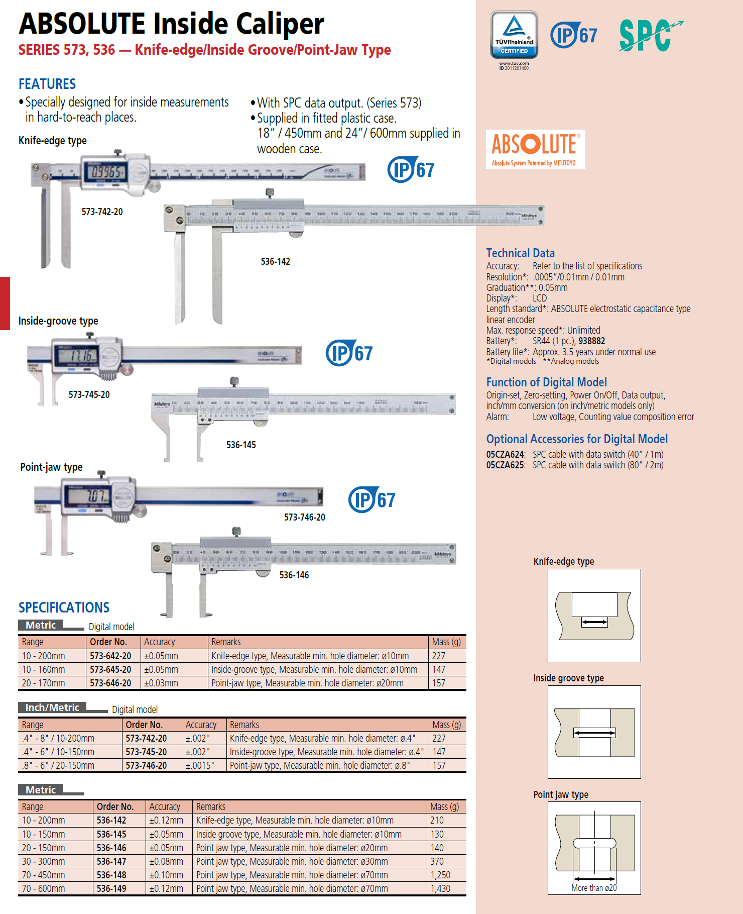 Click the button below to add the Mitutoyo 573-742-20 - 8" ABSOLUTE Digimatic Knife-edge Jaw Type Caliper SPC IP67 to your wish list.