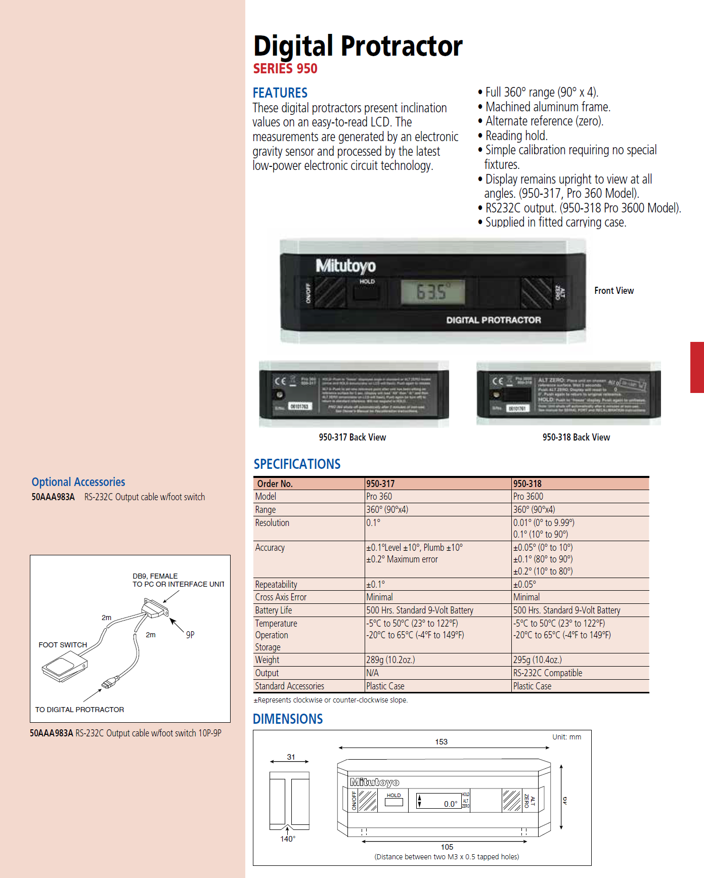 Click the button below to add the Mitutoyo 950-318- Digital Protractor Series 950 Series Pro 3600 SPC to your wish list.