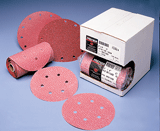 Carborundum - 6" x 6" P400 Vacuum Stick On Discs Premier Red A/O Dri- Lube Resin Paper USA Mfg - 4 Rolls/Box ( 100 discs per roll) 515298