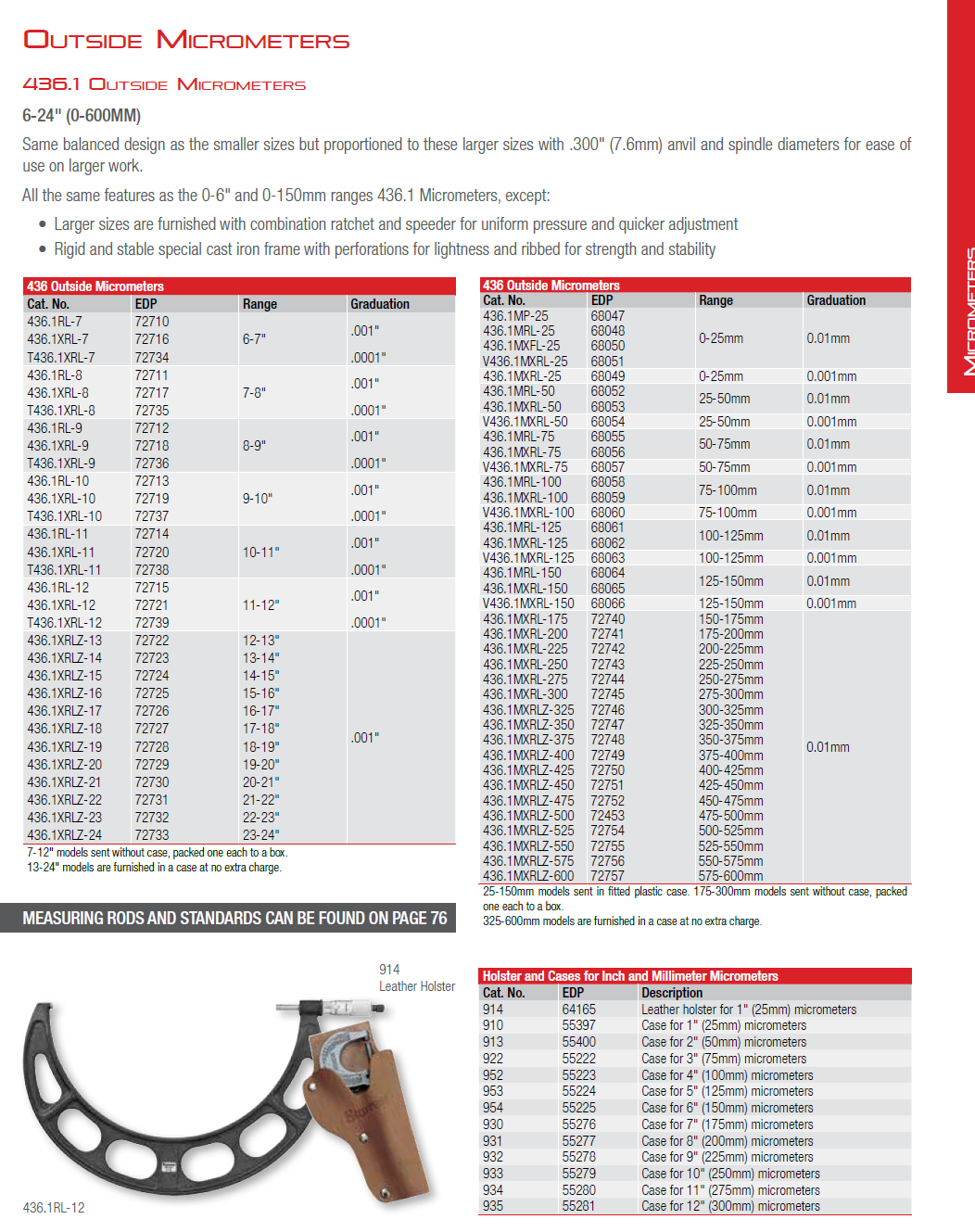 Click the button below to add the Starrett 436.1XRLZ-21 - Outside Micrometer 21", 0.001 Grads w Rachet Thimble & Carbide Anvil-Spindle 72730 USA to your wish list.